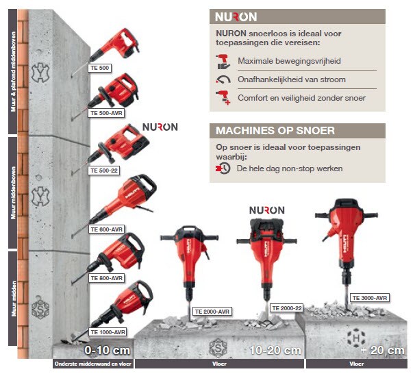 - Krachtige en lichte accu-breekhamer voor het slopen van beton en ander afbraakwerk (Nuron accuplatform)