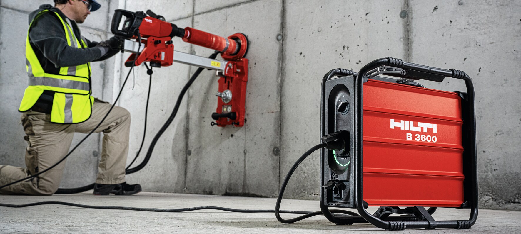 - Driefasen-diamantboorsysteem voor zware toepassingen met hoge-frequentiemotor en automatische voedingsmodule voor kolomboorsystemen met middelgrote en grote diameters tot 600 mm (23-5/8")