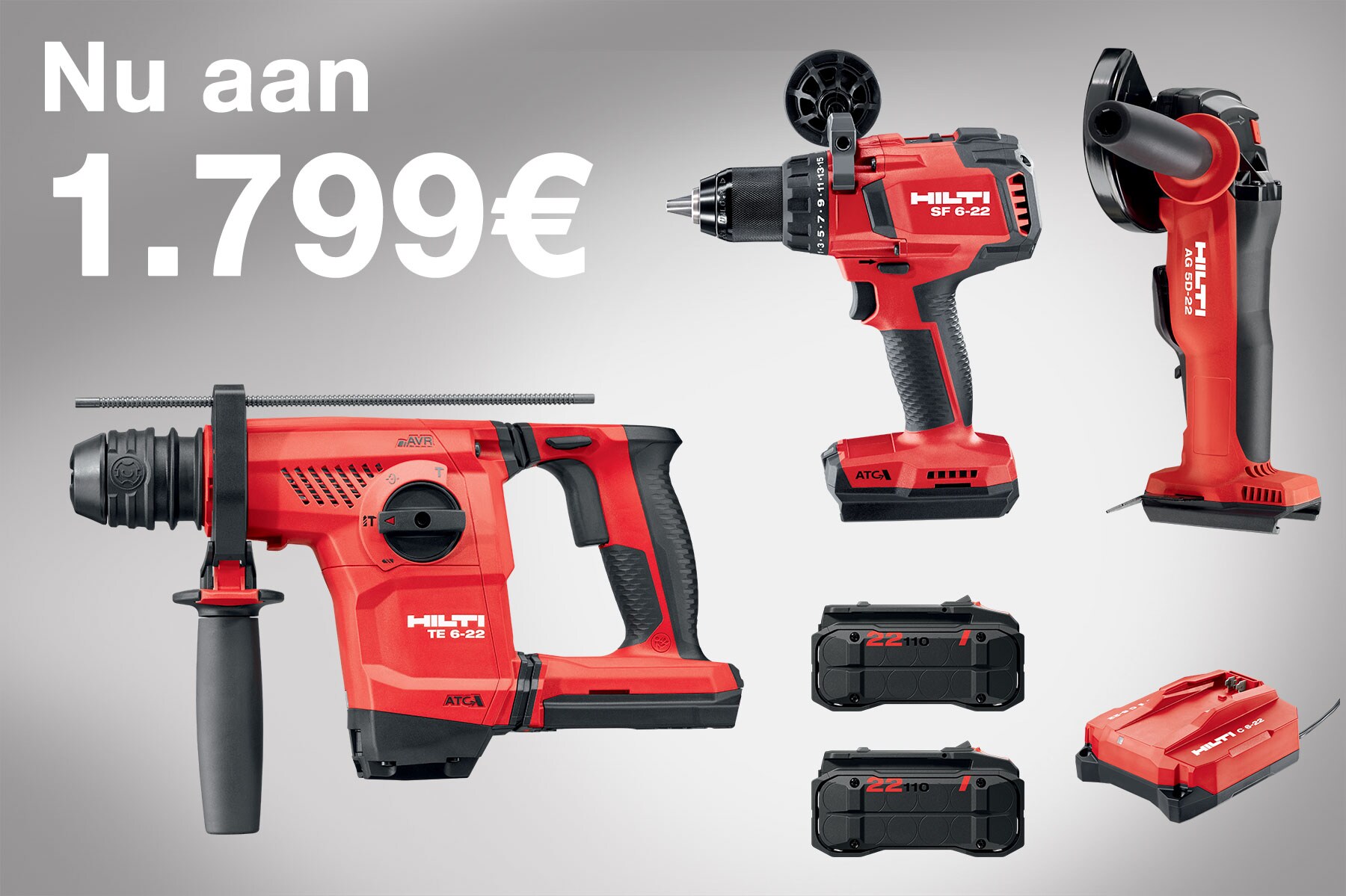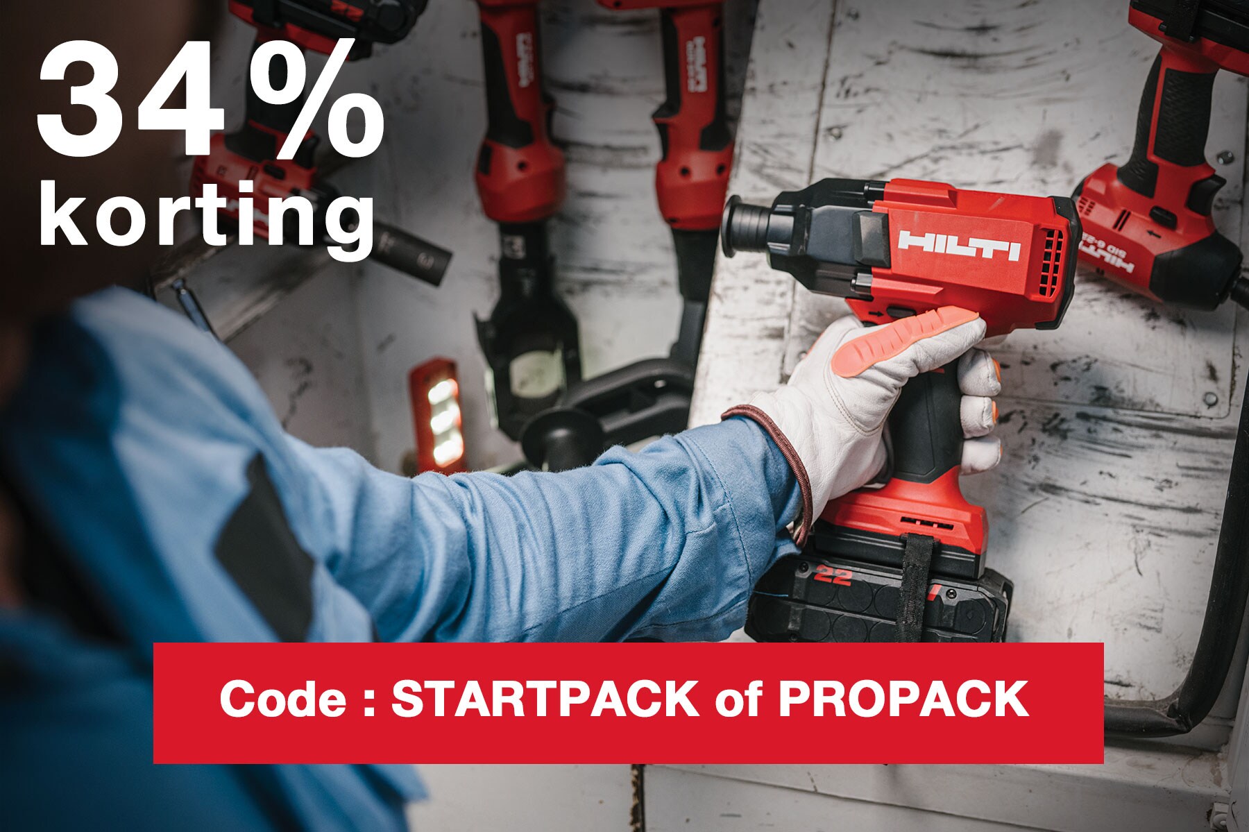 Deze actie, gekoppeld aan de artikelcodes 2479866 en 2479867, is geldig tot 31 december 2026 en kan uitsluitend worden gebruikt via www.hilti.be, via een Hilti-vertegenwoordiger of in een Hilti Store.