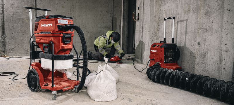 - Extraction de la poussière de meulage, découpe, rainurage, forage et carottage à sec